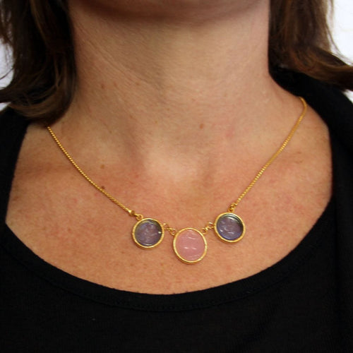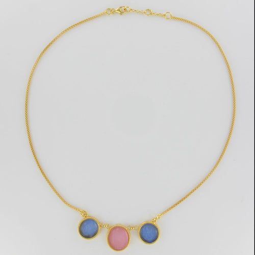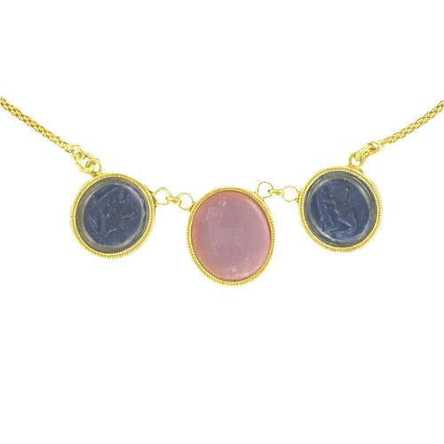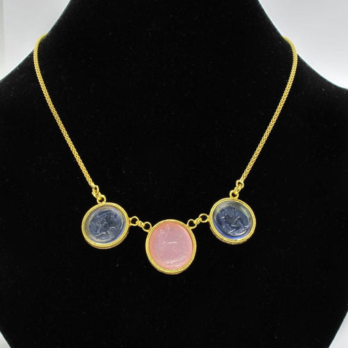 - It is made up of 3 intaglios on glass paste set closed held by a snake chain. The clasp is a spring ring.
