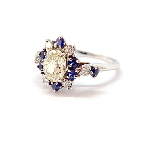 Ring Art Deco in white gold, diamonds and sapphires