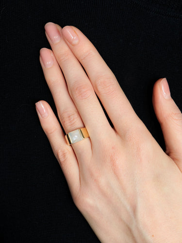 Ring Tank in 750 yellow gold branded of the House Cartier and numbered, decorated with a moonstone.