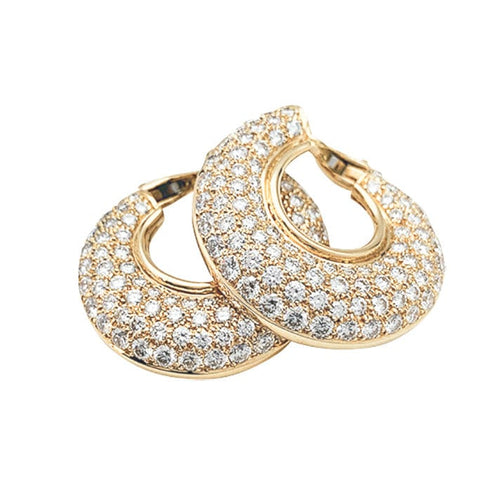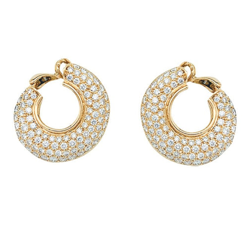 A pair of hoop earrings in 750/000 yellow gold paved with brilliant-cut diamonds.