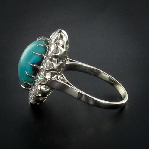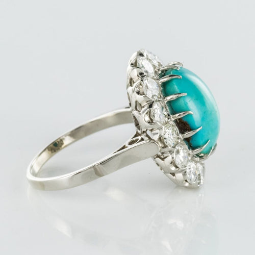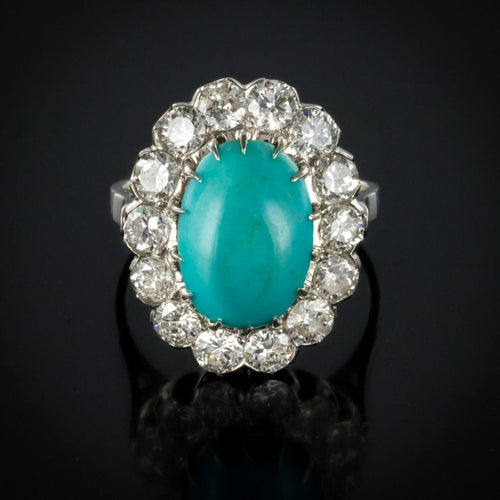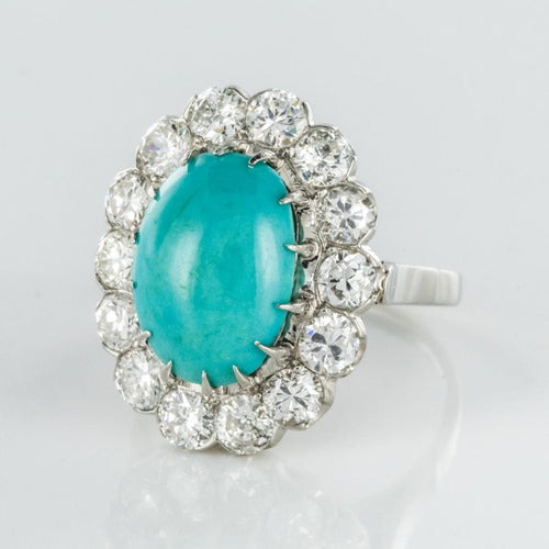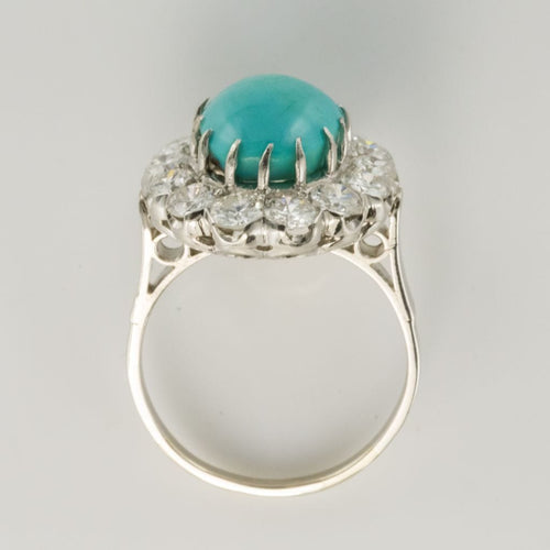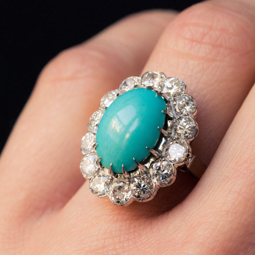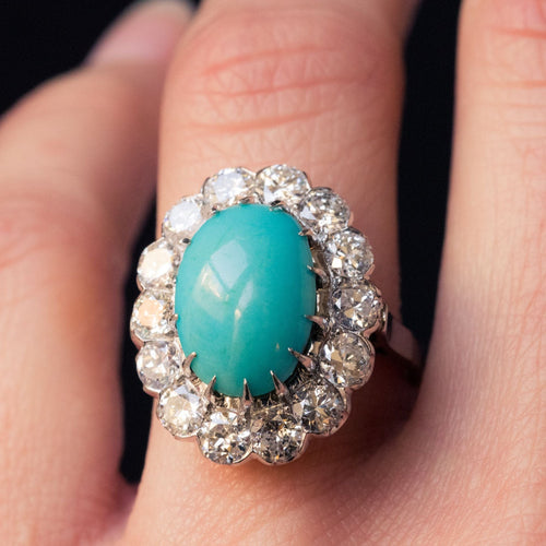 - Weight of the turquoise: approximately 4.50 carats, total weight of the diamonds: approximately 2 carats.