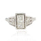 On either side, 2x2 rose-cut diamonds are set in a triangular pattern, which continues with a stepped pattern at the start of the ring.