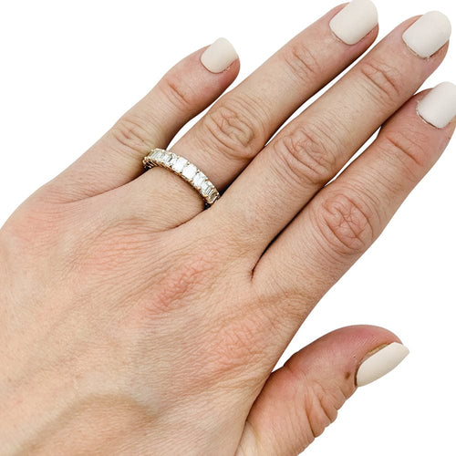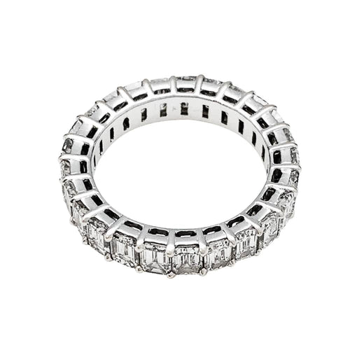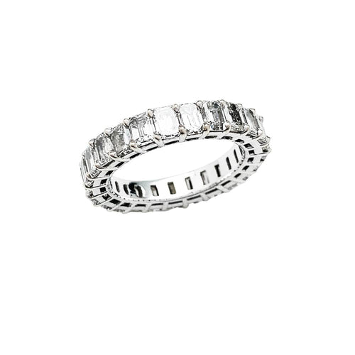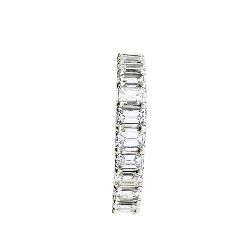 A 750/000 white gold wedding ring entirely set with 25 emerald-cut diamonds in a prong setting.