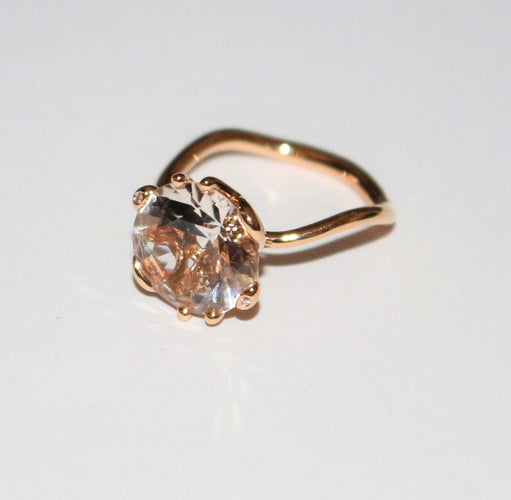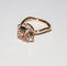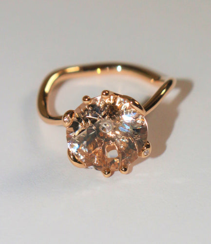 Ring in 750/1000 rose gold, set with a round cut morganite (old pink colored beryl) of approximately 3.80 carats and two small diamonds of 0.01 carat each.