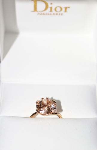 This pink gold ring from the “Oui” collection is made up of two “YES” punctuated on the “I” with two diamonds surrounding the morganite.