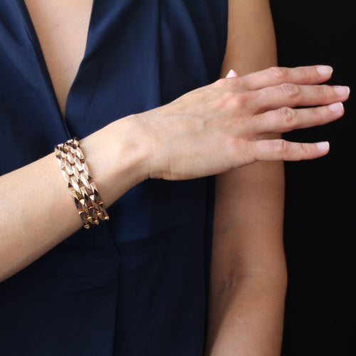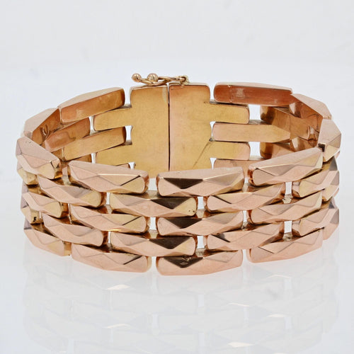 - Soft, openwork, this splendid retro bracelet is made up of 5 rows of faceted bricks. The clasp is ratchet with “8” safety.