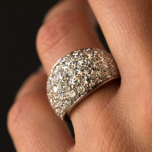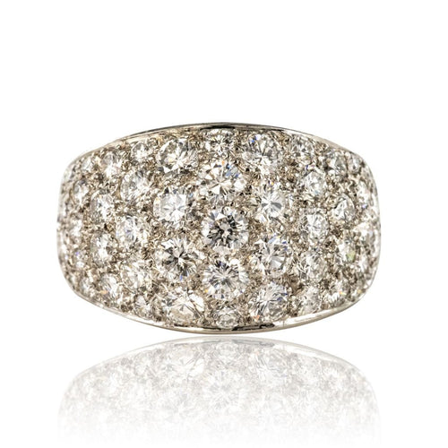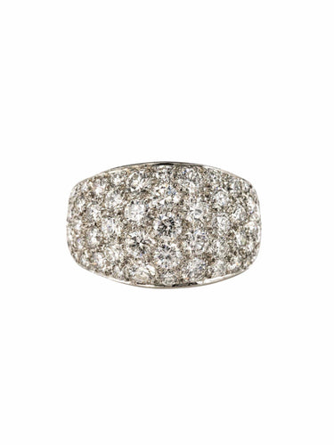 Ring in platinum, dog head hallmark. Domed, this splendid diamond ring is set on its top with a pavé of brilliant-cut diamonds.
