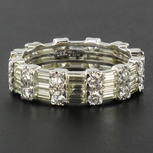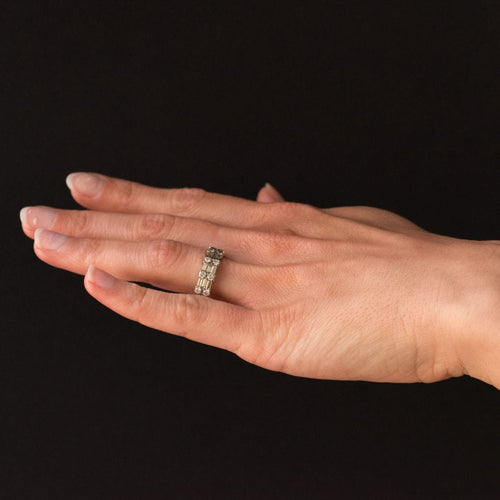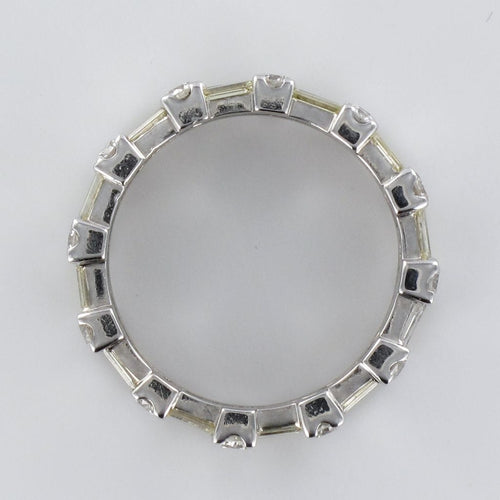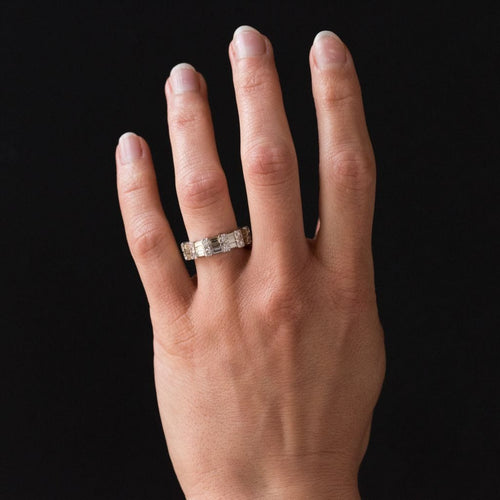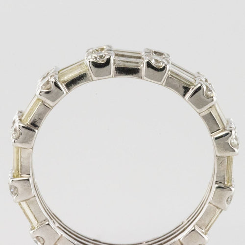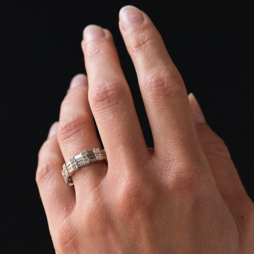 Ring in white gold, 750 thousandths, 18 carats. Diamond wedding ring, this white gold ring is made up on its entire circumference of an alternation of 2 brilliant-cut diamonds and 3 baguette-cut diamonds.