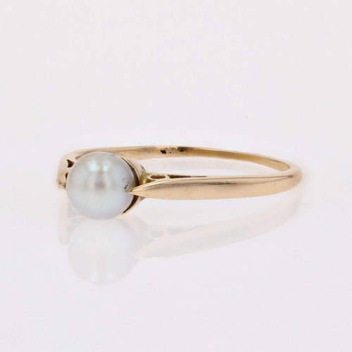- This fine ring is adorned as a solitaire with a pearly white oriental cultured pearl, the ring is surmounted on both sides in profile by an openwork decoration.