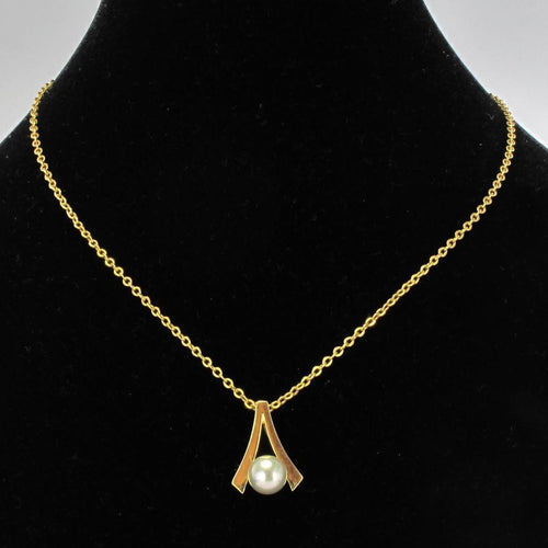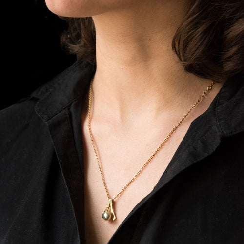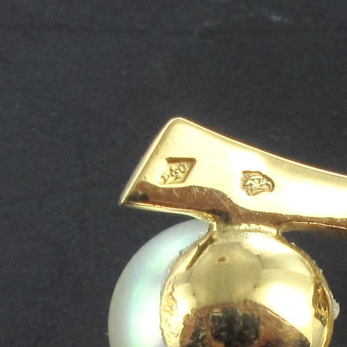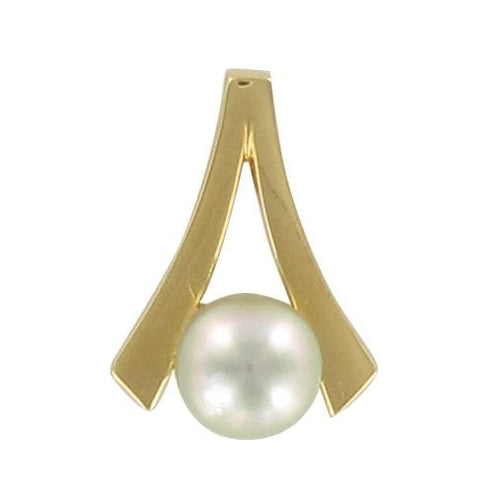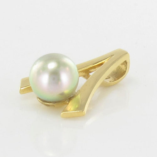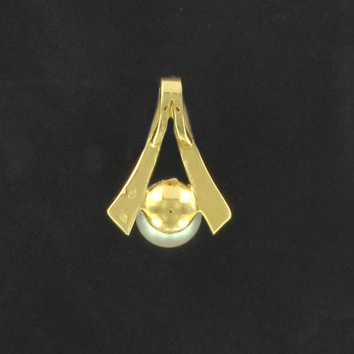 Pendant in yellow gold, 750 thousandths, 18 carats, eagle's head hallmark. This modern gold pendant is set with a gray cultured pearl on an inverted V decoration.