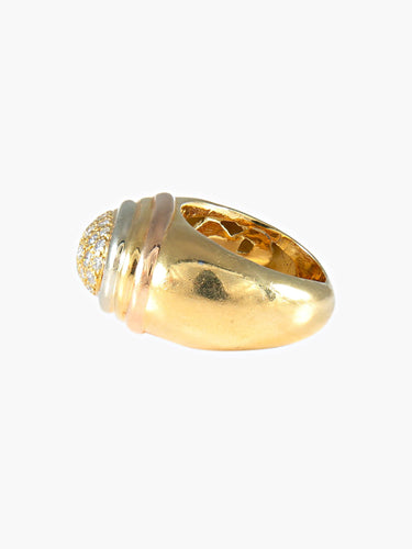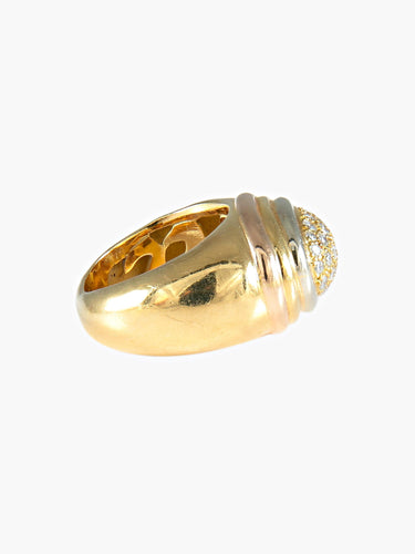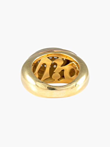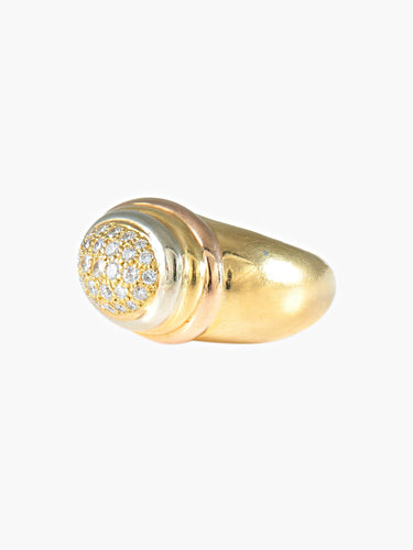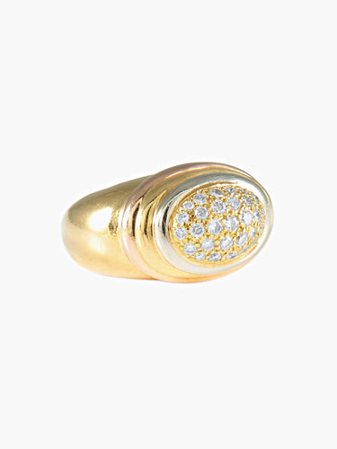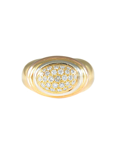 Yellow gold bangle ring (750, owl hallmark) adorned with an oval paving of brilliant diamonds in a three-gold gadrooned surround, marked Diva inside in openwork letters.