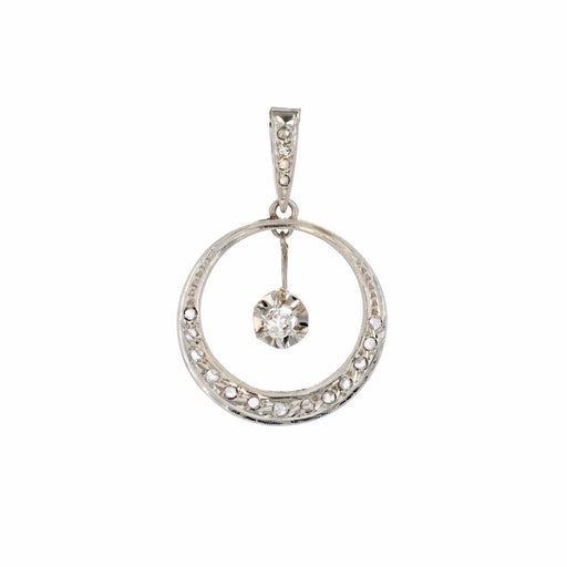 - Pendant Art Deco diamonds, it is round in shape, openwork and set with rose-cut diamonds. In the center, in a tassel, there is an old brilliant-cut diamond held in a claw. The bail is also set with 4 small rose-cut diamonds.