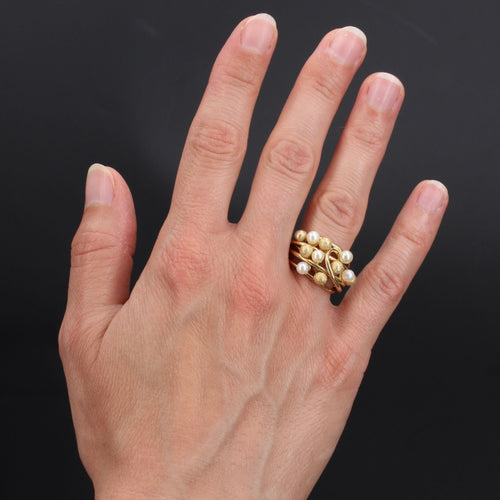 - Domed, this gold dome ring is made up of 5 openwork gold threads, the top of which is dotted with white oriental cultured pearls and amati gold pearls.