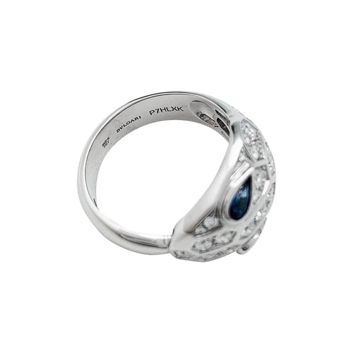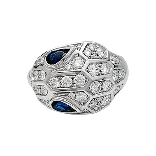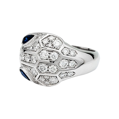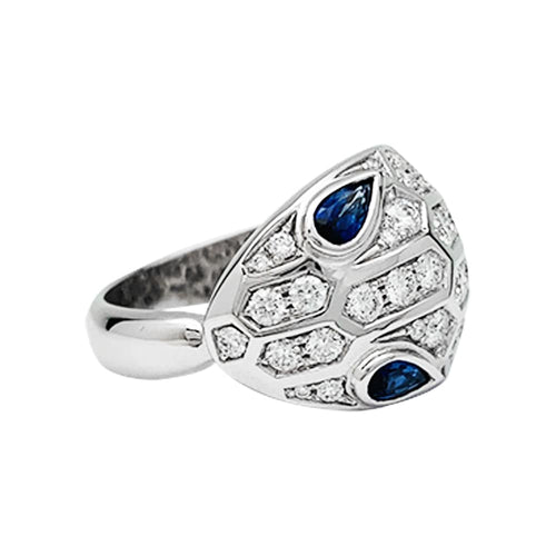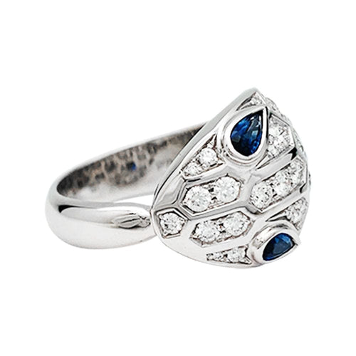 Ring Bulgari "Serpenti" in white gold, diamonds and sapphires.