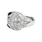 A ring branded of the House Bulgari, model "Serpenti", in 750/000 white gold, paved with 0.74 carat of brilliant-cut diamonds. The eyes are set with pear-shaped sapphires of 0.43 carat.