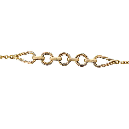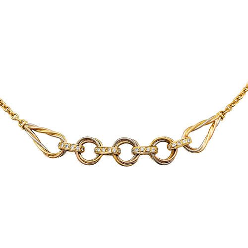 A necklace branded of the House Cartier Paris, model "Trinity"3 gold 750/000, centered on 3 rings trinity, framed by pears made of intertwined gold threads linked together by links set with brilliant-cut diamonds.