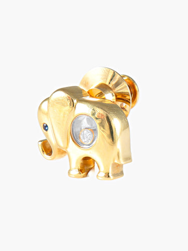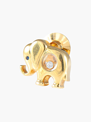 CHOPARD, elephant pin in 750/1000 (18k) yellow gold, bezel-set with a sapphire enhanced with a moving diamond.