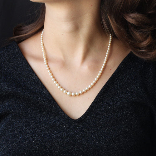 - Length: 46.5 cm, pearl diameter: from 2.5/3 mm to 7.5/8 mm.