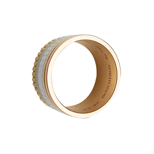 A ring branded of the House Boucheron, model "Quatre White Edition Large", in 750/000 yellow, pink and white gold, white ceramic.