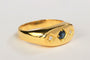 Ring in 750 thousandths (18 carat) Yellow Gold, Set in its center with a round Sapphire of approximately 0.09 ct and 2 brilliant-cut diamonds for a total of approximately 0.02 ct GH V-SI, Weight: 5.25 g, stamped finger size: 54, excellent condition