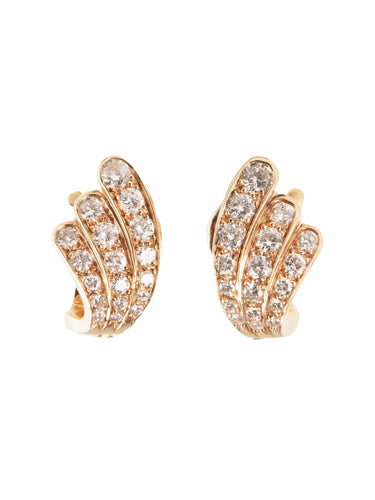 Pair of yellow gold ear clips branded Van Cleef & Arpels, the three lines of diamonds make a nice movement on the ear.