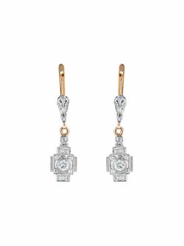 Pair of two gold and diamond earrings.