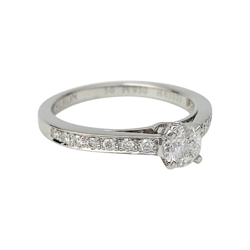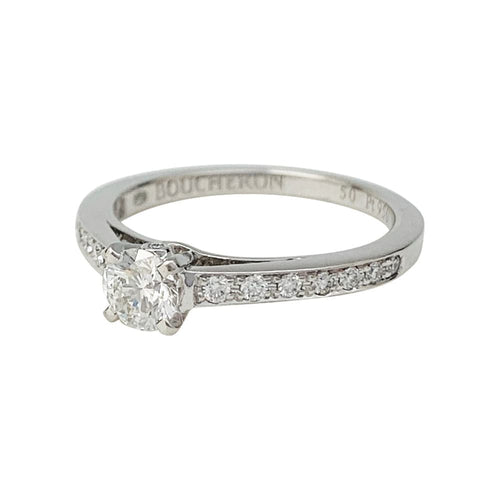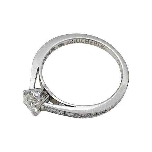 A ring branded of the House Boucheron, 'Beloved', in platinum 950/000 set with a 0.30 carat diamond (F/VVS) and 16 brilliant-cut diamonds on each side.