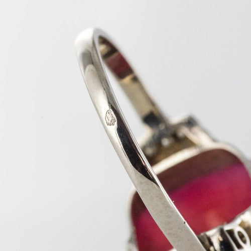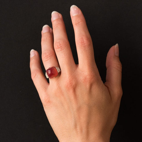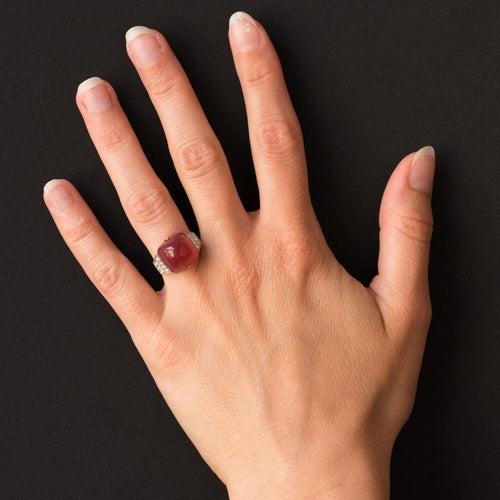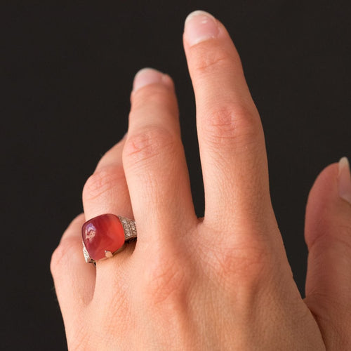 Our opinion : Sublime, this ring is set with chalcedony with pink-brown nuances, original and wonderfully enhanced by the diamonds surrounding it.