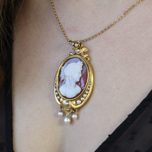 Ancient pendant cameo and fine pearls