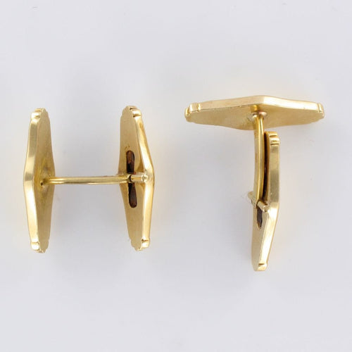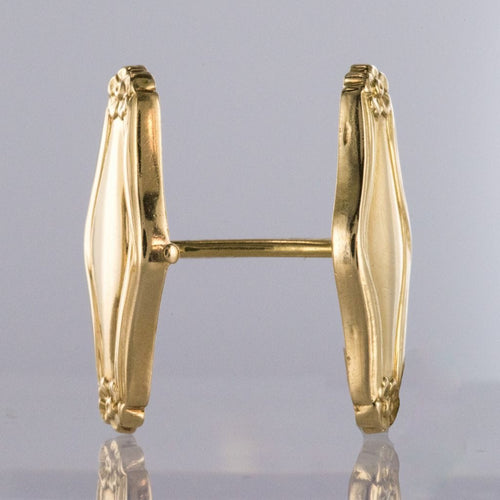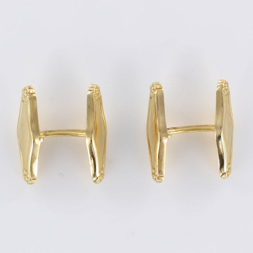 Pair of cufflinks, in 750 thousandths, 18-carat yellow gold, horse's head hallmark. Each gold cufflink is formed by an elongated pattern engraved at each end with a floral decoration. The loop has the same pattern and is articulated to allow the buttonhole to pass through.