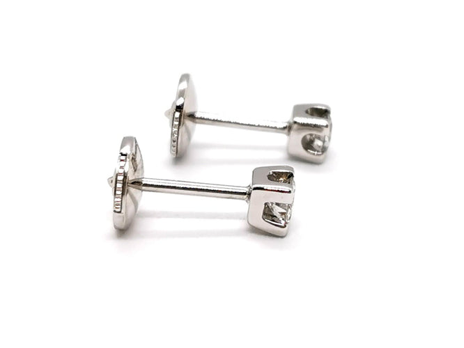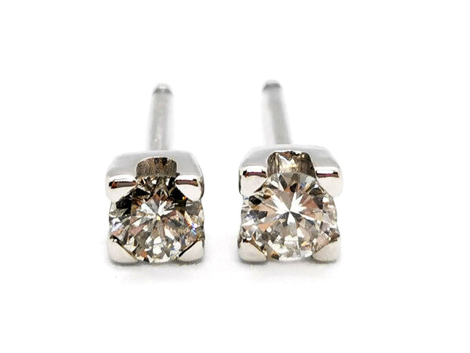 Earrings in tested 750 thousandths (18 carat) white gold, 2 brilliant-cut diamonds, approximately 0.19 ct each, approximately H/VS2, claw setting, alpa clasp.