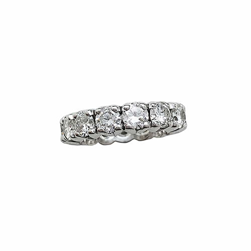 A 750/000 white gold wedding ring entirely set with 15 brilliant-cut diamonds.