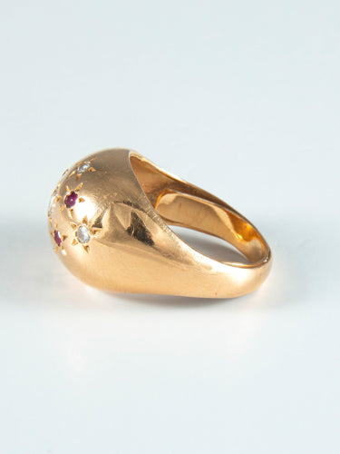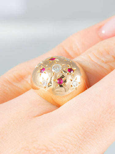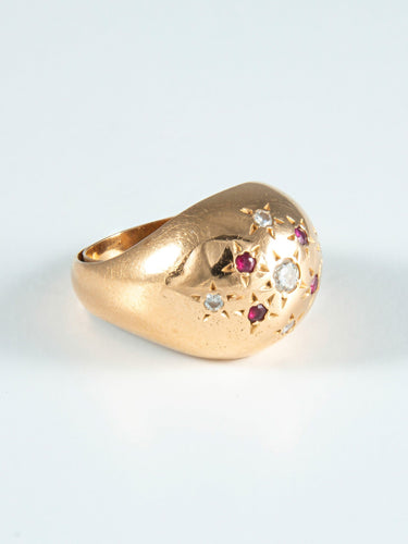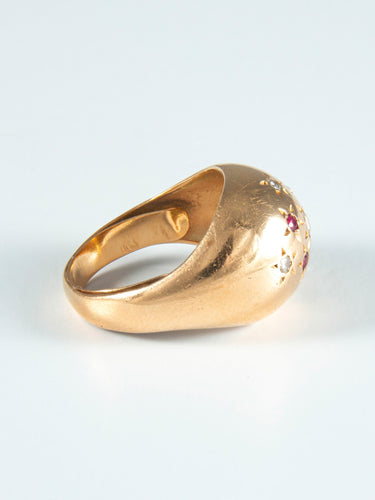 Boule ring in 750/1000th yellow gold adorned with rubies and diamonds.