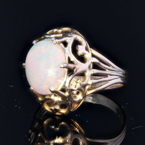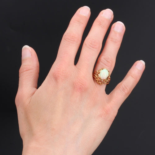 - Magnificent vintage ring, it forms a dome on the finger, openworked with heart motifs, which holds a clawed cabochon opal in the center. The ring is made up of 5 gold wires which come together to form one.