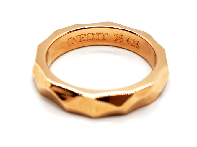Ring branded from the house Inédit Joaillier, Météorite collection, in 750 thousandths pink gold, size: 50, width: 0.37 cm, total weight: 5.53 g, branded and numbered: 26428, eagle's head hallmark, excellent condition