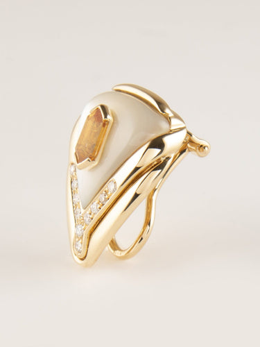 Clip-on Earrings, Yellow Gold, Diamonds, Mother-of-pearl and Citrine