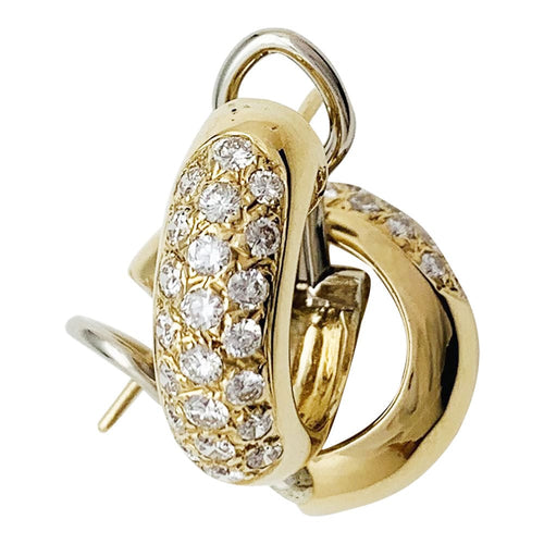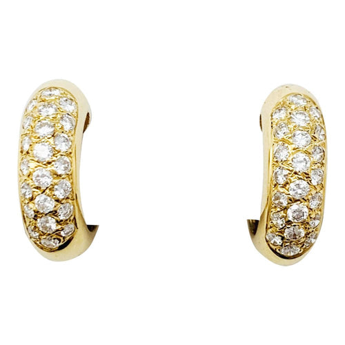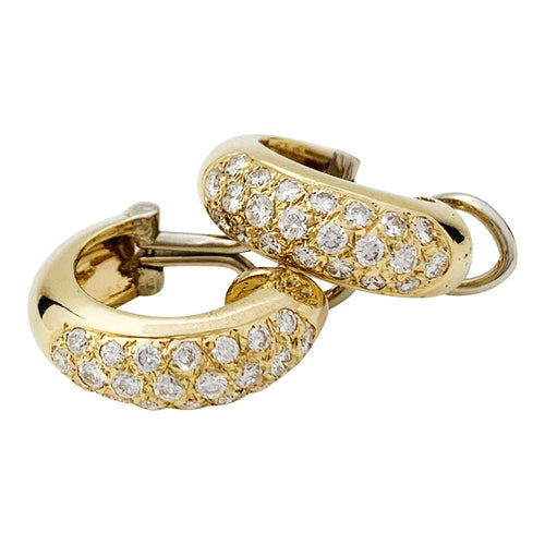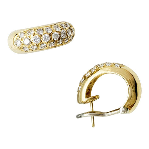 A pair of half hoop earrings in 750/000 yellow gold paved on the front with small brilliant-cut diamonds. The racket on the back is in 750/000 white gold.