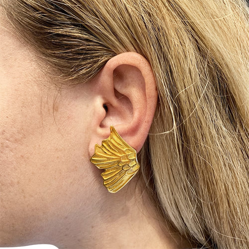 A pair of earrings branded of the House Lalaounis, featuring wings in 585/000 yellow gold, plated in 750/000 yellow gold.