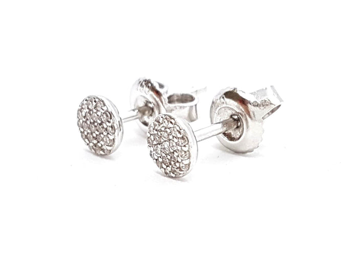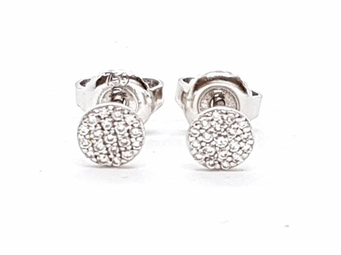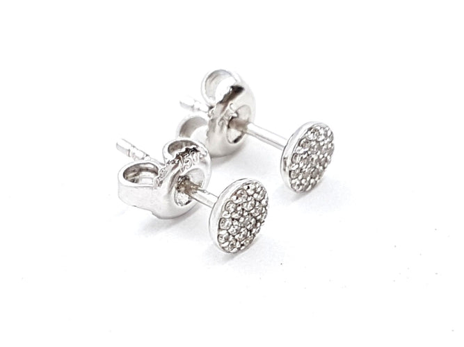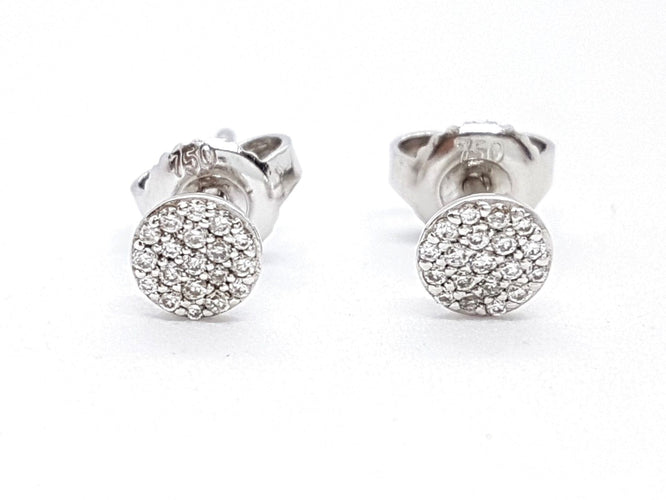 Earrings in 750 thousandths (18 carat) white gold, paved with F-VS brilliant-cut diamonds for a total of 0.14 ct, dimensions: 0.5 cm x 0.5 cm, total weight: 1.45 g , eagle head hallmark on the stem, new condition