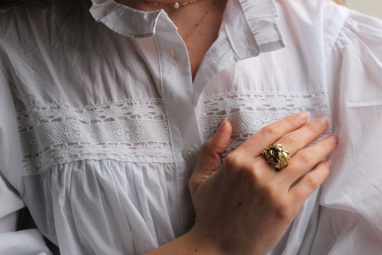 Vintage ball ring in 18k 750 thousandths yellow gold, Art Nouveau style, ears of wheat