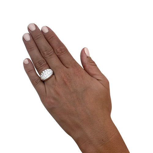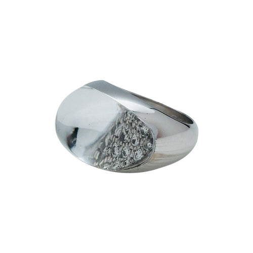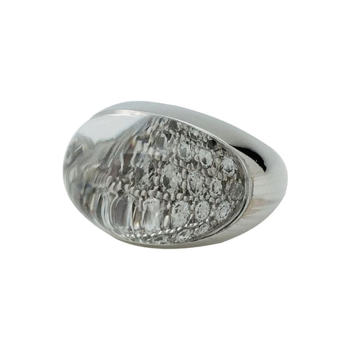 A ring branded of the House Cartier, "Myst" model, in 750/000 white gold, set with a pavé of brilliant-cut diamonds revealed by a rock crystal cabochon.