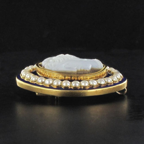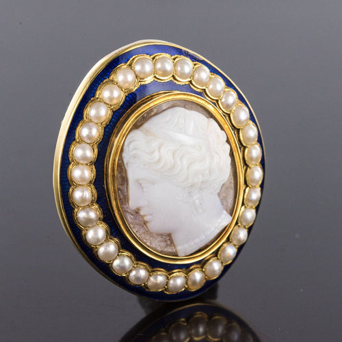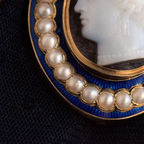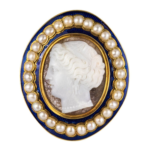 Our opinion : A cameo splendid, the large blue enamel and the fine pearls are intact which is rare for a jewel of this period.