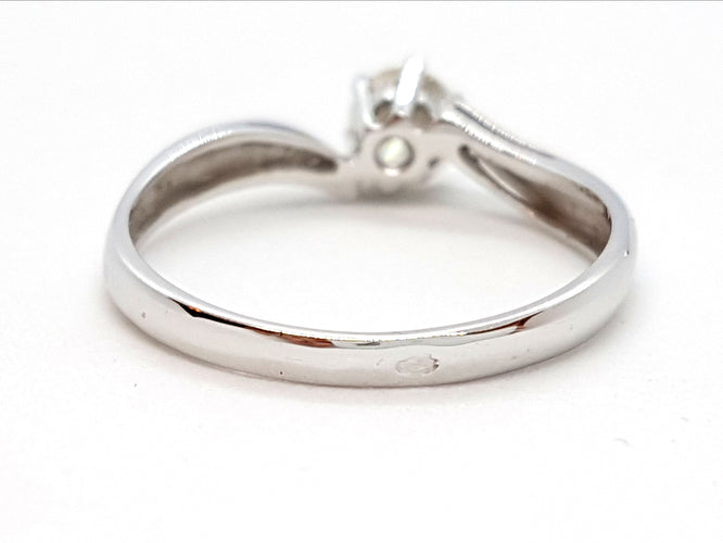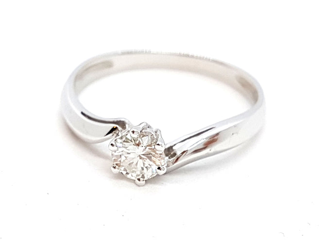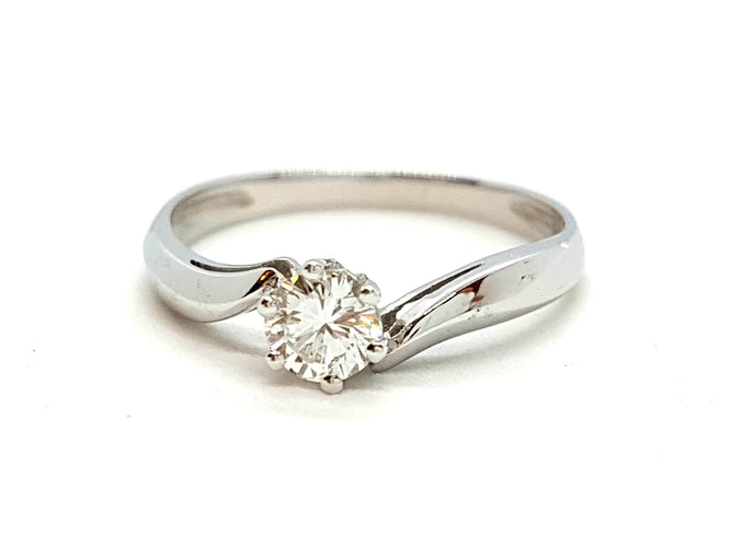 Solitaire in 750 thousandths (18 carat) white gold, set with a GH V-SI brilliant-cut diamond of approximately 0.40 ct, Ring size: 56, width on top: 0.55 cm, total weight: 2.10 g, new condition, eagle's head hallmark