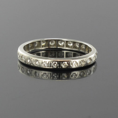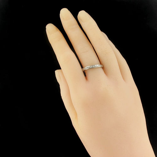 Alliance in platinum, mascaron punch. This old wedding ring is set all around with diamonds.
