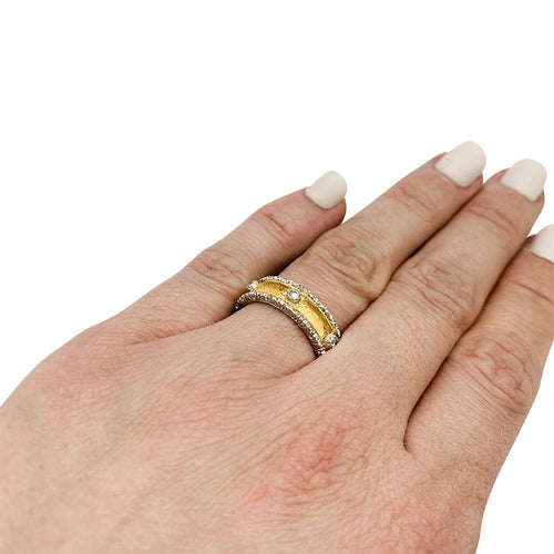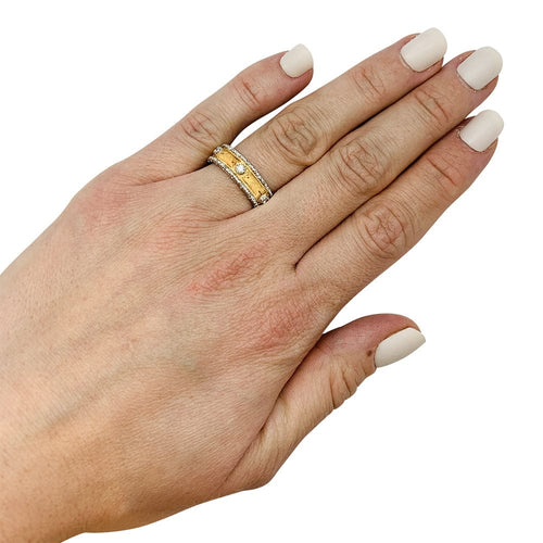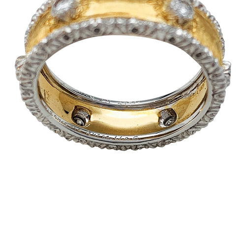An alliance branded from Maison Buccellati in 750/000 yellow and white gold, "Fusi" model, set with 6 brilliant-cut diamonds.