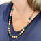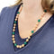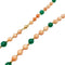 Long necklace with coral balls, chrysoprase, yellow gold spacers.