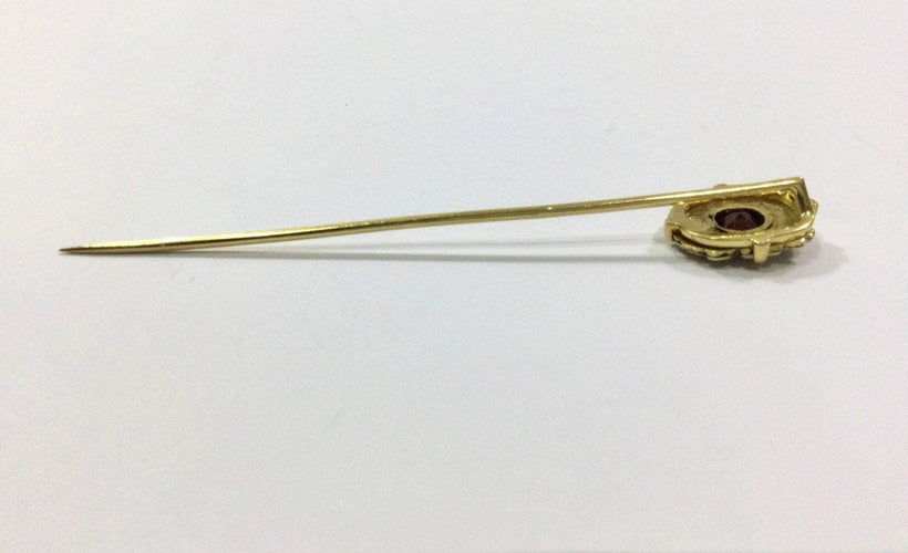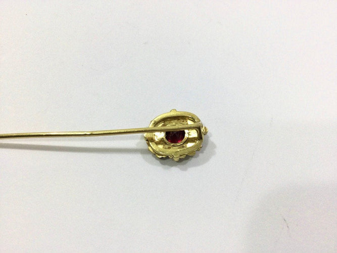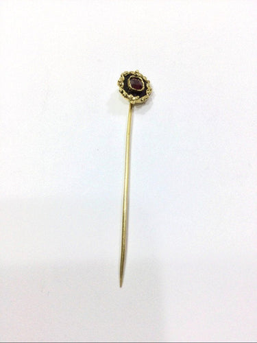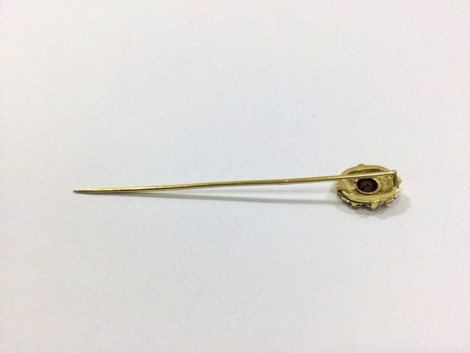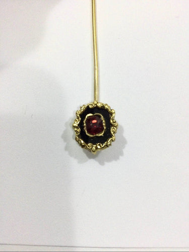 - Tie pin in 18 carat yellow gold decorated with an onyx plaque and a garnet in the center.