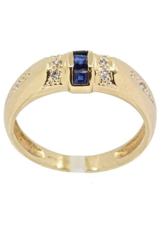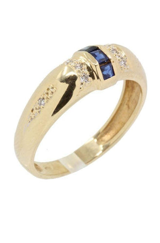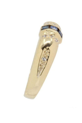 In perfect condition, this modern ring is set with diamonds and sapphires.