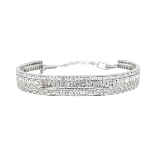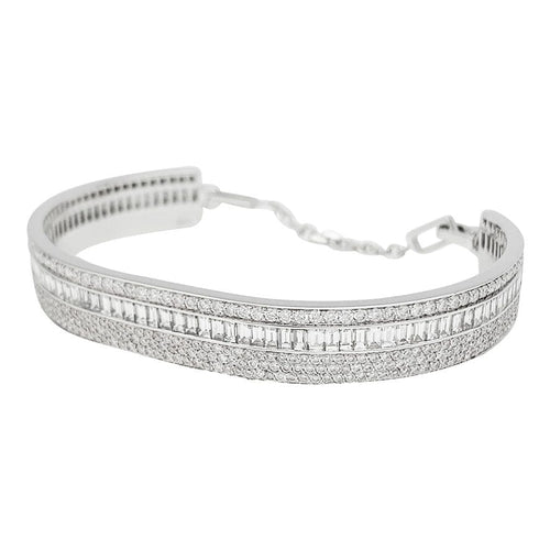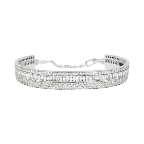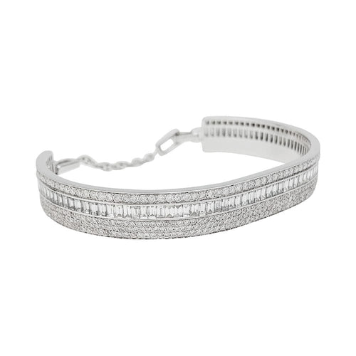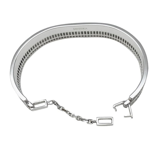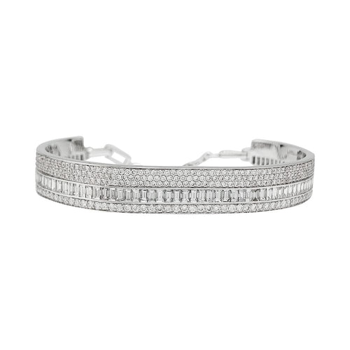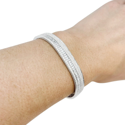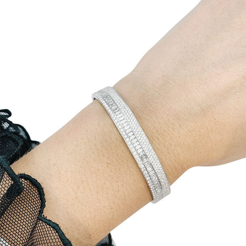 A bracelet branded from Maison Messika, "Liz" model, in 750/000 white gold paved with brilliant-cut diamonds and centered with a line of baguette-cut diamonds.