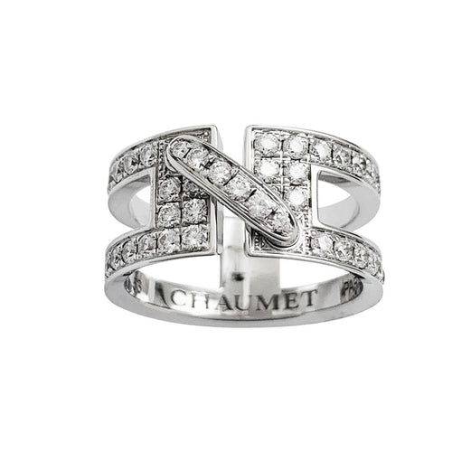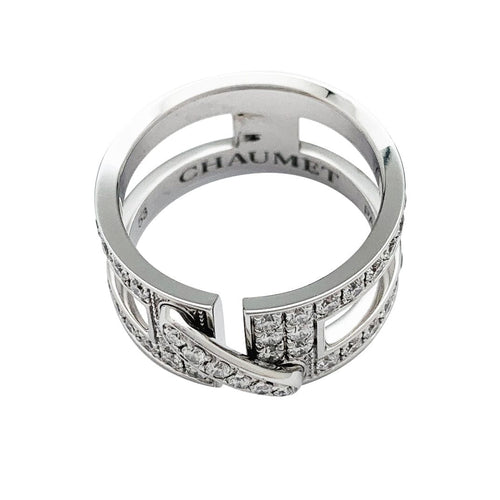A ring branded of the House Chaumet, 'Lien Ajouré' model, in 750/000 white gold set with 42 brilliant-cut diamonds for a total weight of 0.85 carat, G/VS quality.